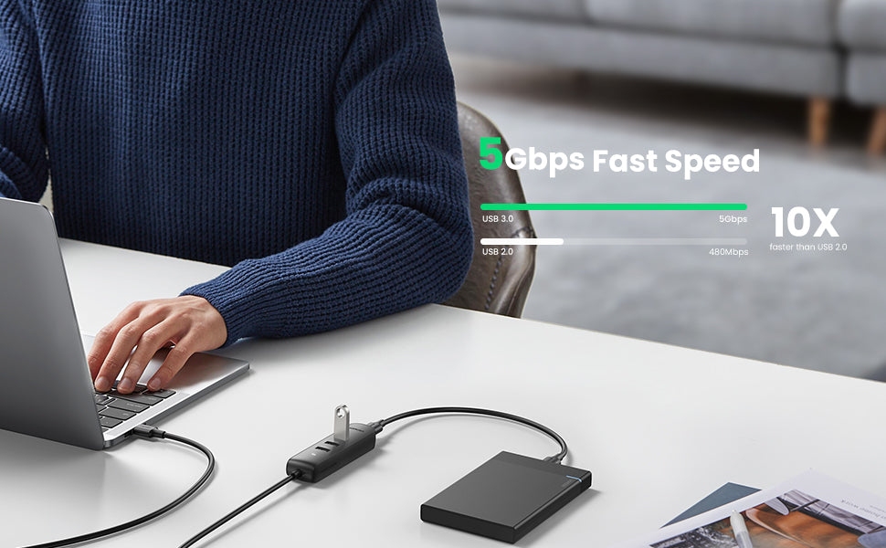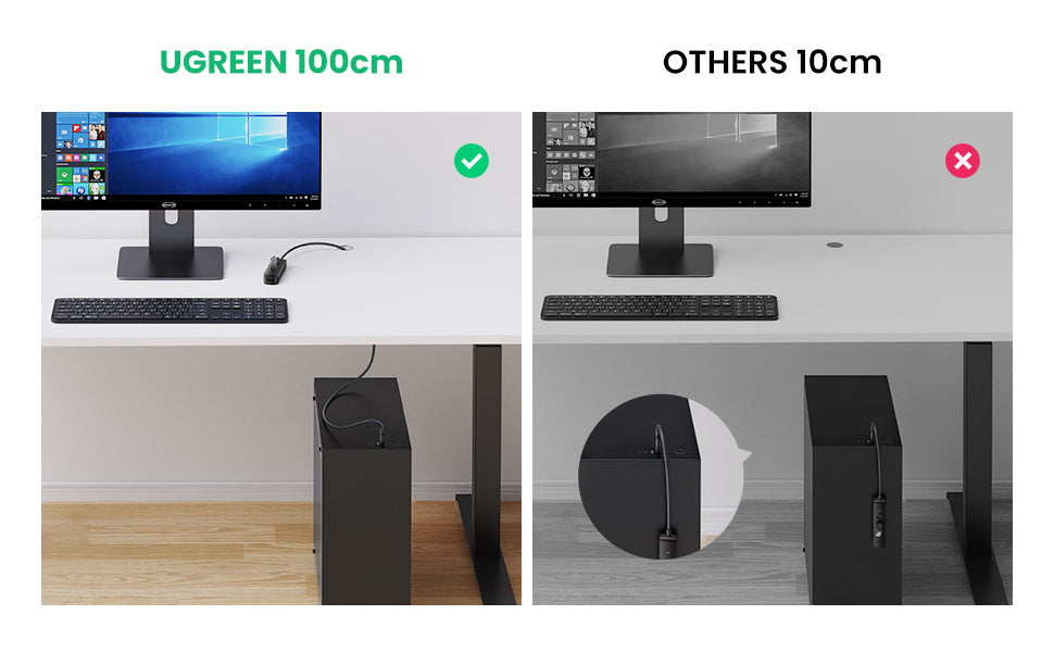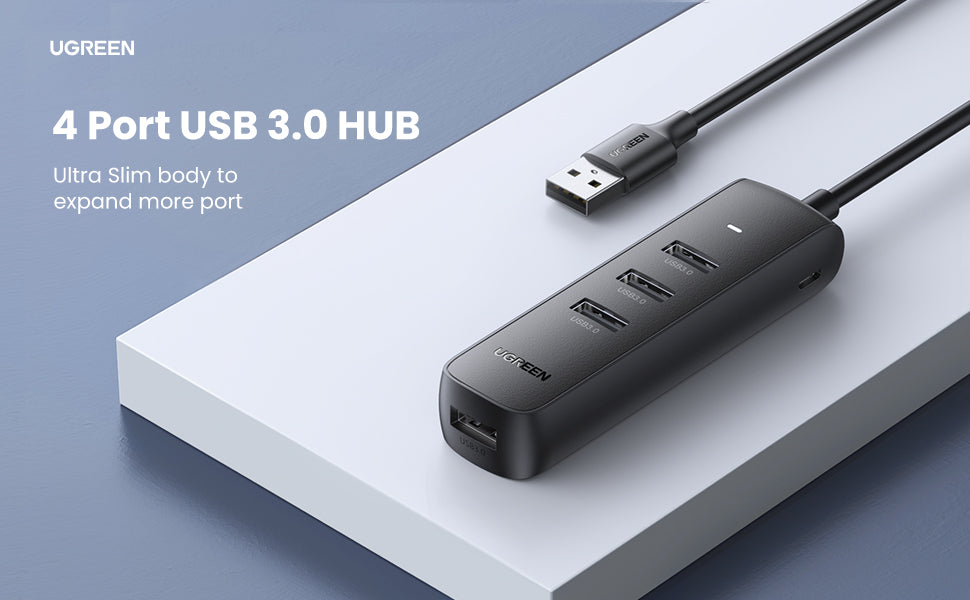- 100 cm Extension Cable: UGREEN USB hub features a 1-meter long cable to conveniently reach the port under the desk but still keep the hub near enough to use easily. A good accessory to organize your connection cable on a PC. Moreover, the compact size and sleek edge design offer a comfortable handle feeling and ease to fit in your briefcase.