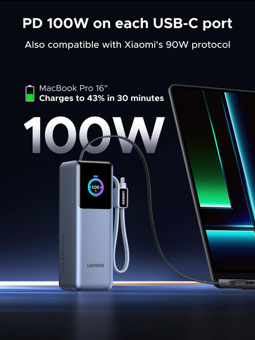 UGREEN Nexode Power Bank with Retractable Cable (25000mAh, 200W, 4 Ports)