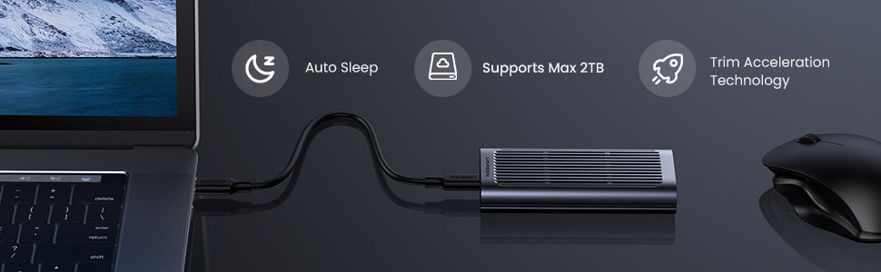 UGREEN M.2 NVMe enclosure is designed to house an M-Key & M+B Key NVME PCIE based SSD above 2TB, which turns it into a portable USB 3.2 external drive for maximum utilization. No driver needed, just plug and play. Ideal for transfering files, backing up data, reusing old M.2 SSD, expanding storage space.
