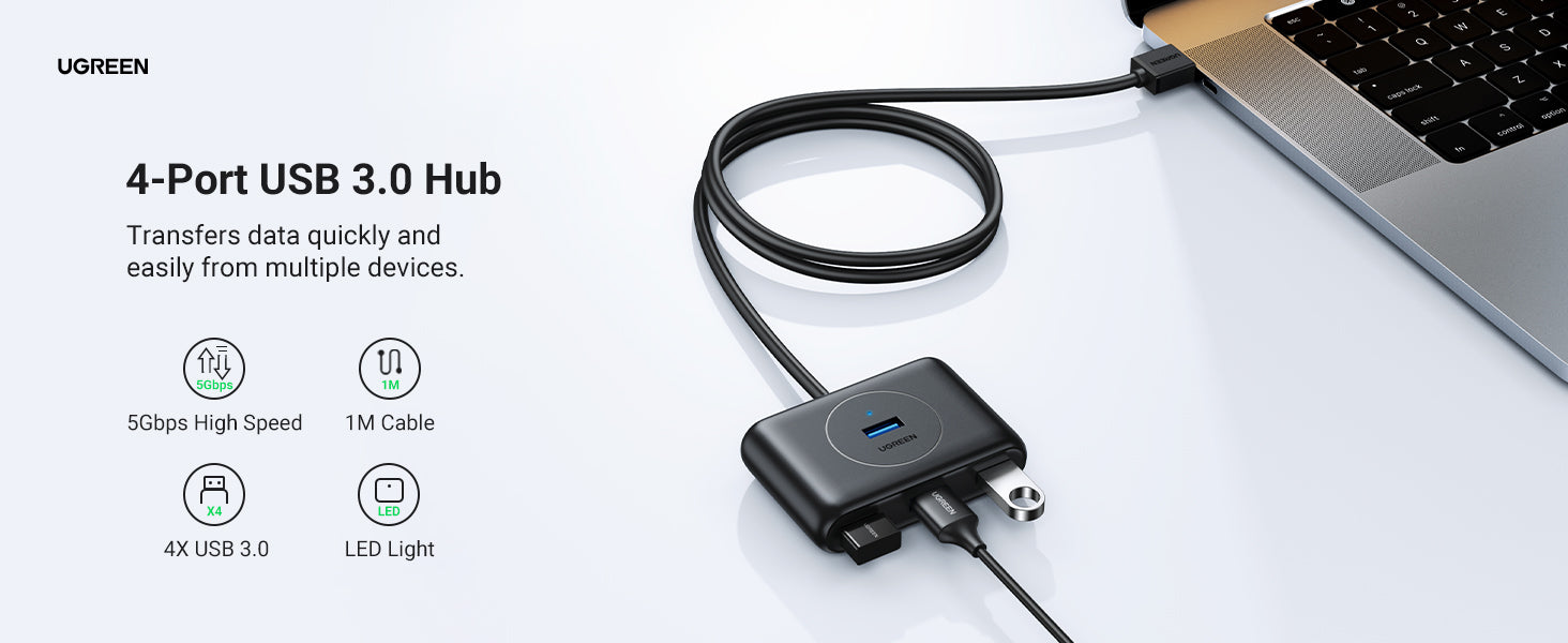 - Add Extra 4 Ports USB 3.0: UGREEN USB 3.0 Hub simply helps you to expand another 4 USB port to connect the USB peripherals to your PC, Laptop or Gaming device, such as USB Flash drive, Mouse, Keyboard, Webcam, USB Mic, External HDD, USB Card Reader, USB Fan, USB Headsets and much more USB devices. Turn one of your laptop USB 3.0 port into 4, keeps you away from the troubles of plugging and unplugging repeatedly.