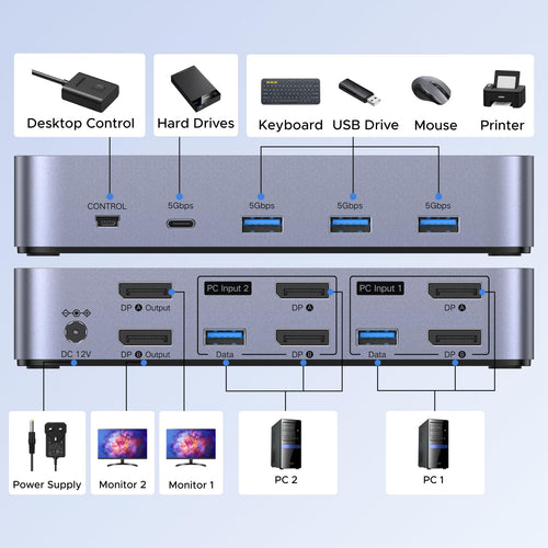 • UGREEN KVM Switch (2 Computers, 2 Monitors, 8K@60Hz)