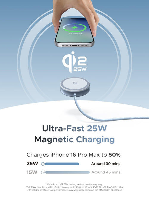 UGREEN MagFlow Magnetic Wireless Power Bank (10000mAh, Qi2 25W, MagSafe-compatible)